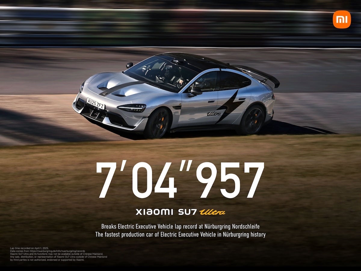 量産モデルの「Xiaomi SU7 Ultra」が、ニュルブルクリンク北コースにて最速の電動エグゼクティブカー記録を樹立しました。ラップタイムは7分04秒957であり、高性能EVの分野における揺るぎないリーダーとしての地位を確立しました。