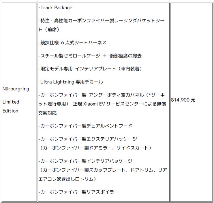 Xiaomi SU7 Ultra「Nürburgring Limited Edition」の価格は814,900元。