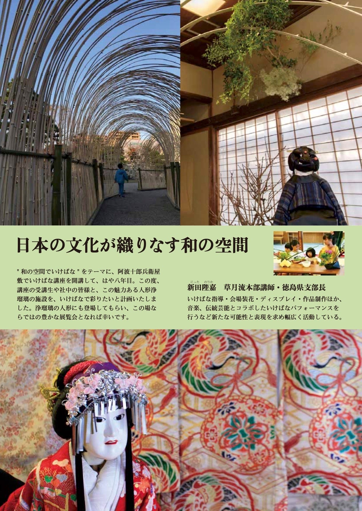 いけばなと人形浄瑠璃との日本文化が織りなす和の空間をご覧いただけます。