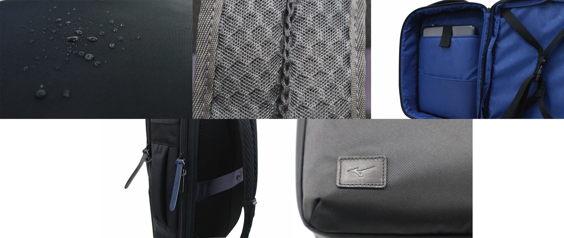 ミズノ様とのバックパック企画は、今回で第5弾になります。ビジネスシーンでもバックパックが定着してきたこともあり、企画を重ねるごとに反響が高まっています。お客様からは、「雨天は傘をさしてもバッグが濡れるから撥水性は必須」という声の他にも「夏場のバックパックはショルダーの下が汗で濡れる」など、撥水性とともに通気性を求める声も増加しています。そこで今回は、昨年好評だったバックパックを進化させ、ジメジメとした梅雨の季節や真夏でも活躍するバックパックを企画しました。スポーツ×ビジネスの技術を組み合わせで、撥水性、通気性、重さを分散させるミズノ様独自のテクノロジーに加えて、デザインはビジネスで使いやすいシンプルなフォルムに仕上げています。
