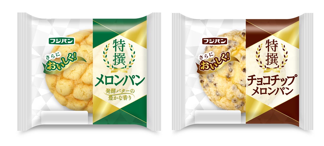 1999年の発売以来、皆様に愛されてきた『特撰メロンパン』。発酵バターの香りと、メロン皮のビスケット生地とパン生地の絶妙なバランスが、人気の秘訣です。今回のリニューアルでは、そのバランスをさらに高めるため、メロン皮の配合を見直し、サックリ感を追求しました。発酵バターの風味が拡がるこだわりを食感をお試しください。『特撰チョコチップメロンパン』も同様に、メロン皮の配合を見直し、さっくり感を向上させました。チョコチップとの相性もさらに高まり、お子様から大人まで、幅広い層に愛される味わいに進化しました。