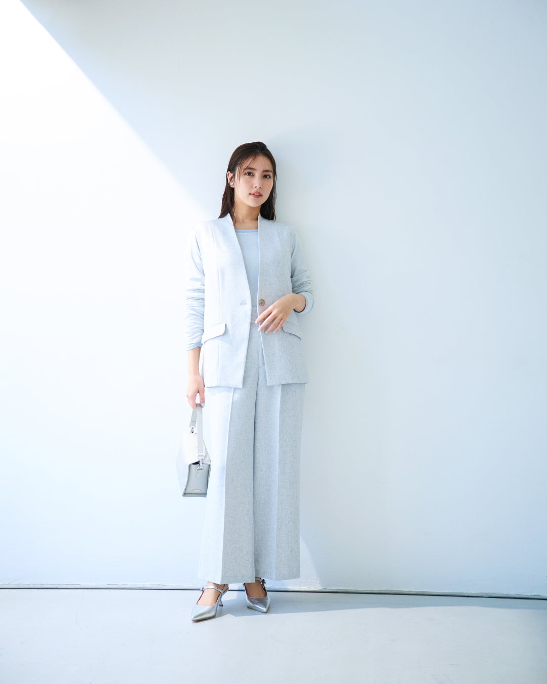 Jacket_ ¥28,600/Pants_ ¥22,000/Shirt_ ¥18,700/Pumps_ ¥17,600