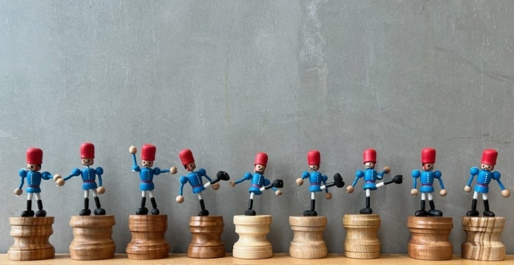 市原湖畔美術館の人気作品「トイソルジャー」が小さなプッシュトイになってやってきた!出来上がった作品の台座を押すとトイソルジャー君が伸びたり縮んだり、まるでダンスをしているみたい。アーティストのKOSUGE1-16と一緒に、木のパーツを組み合わせて自分だけのプッシュトイをつくろう!