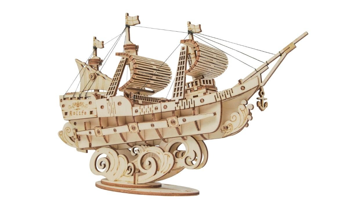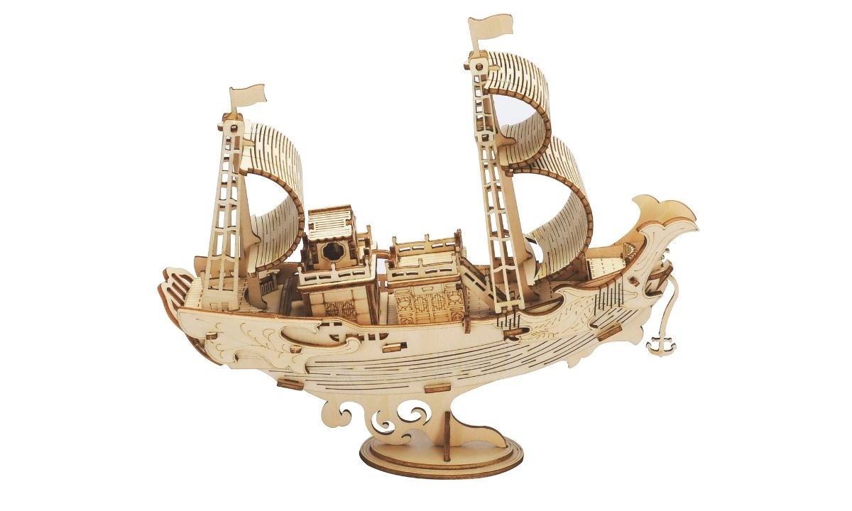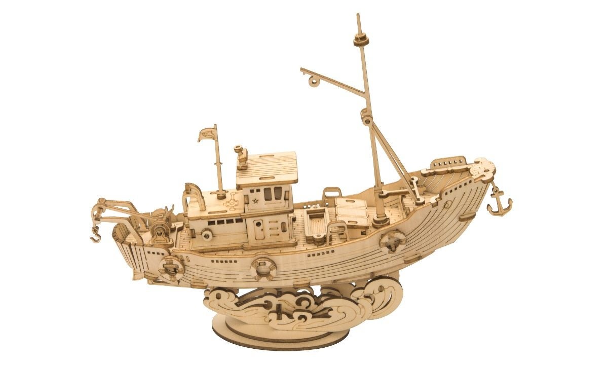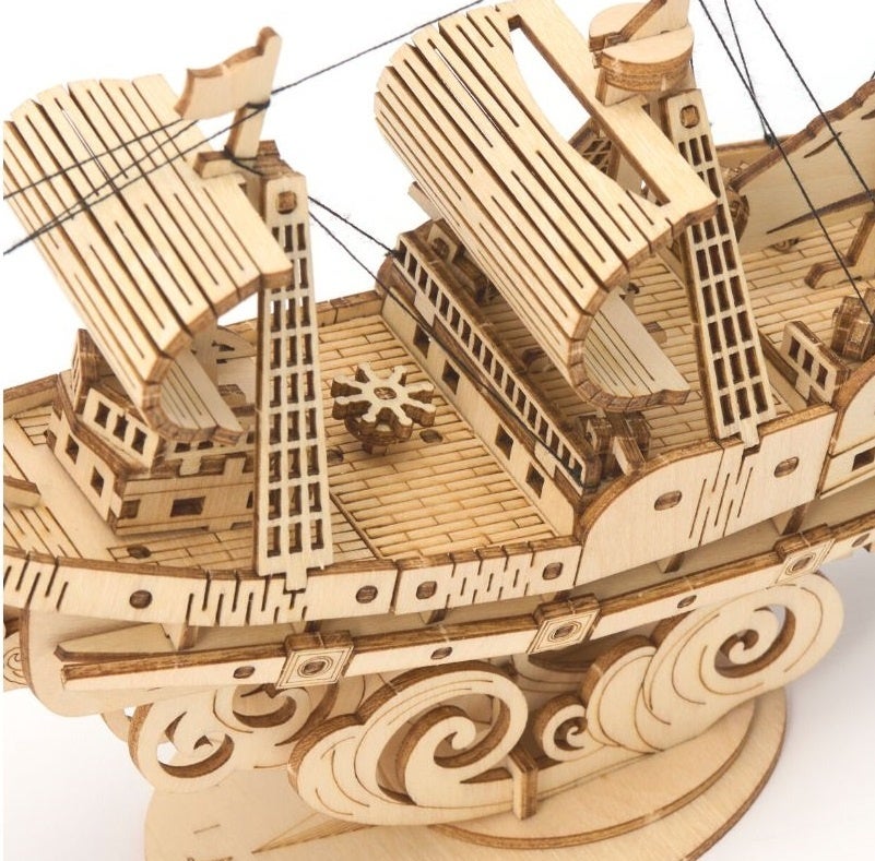 船シリーズは「クルーズ船」「漁船」「帆船」「宝船」の4種。「クルーズ船」はどっしりと重厚感のある雰囲気が特徴的で、「漁船」はウッドパズルの焼きで表現された船体の模様がポイントです。また、「帆船」「宝船」の帆の部分は切り込みの入ったじゃばらパーツで再現されており、それぞれの船ごとに細部までこだわってつくられています。ウッドパズルでありながら模型のような繊細さを持ち合わせているため、つくった後もインテリアとしてお楽しみいただけます。