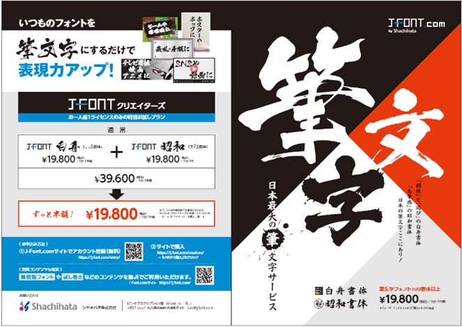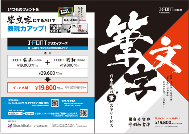 インキ浸透印「Xスタンパー」のシヤチハタ社が開発したフォントサービス「J-Font.com」(白舟書体、昭和書体)を展示します。お墓、寺院や葬祭など、格式と日本伝統の和を強調したいシーンにふさわしい筆文字書体を取り揃えています。