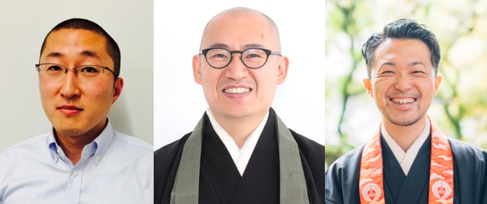 登壇者:(写真左から)浄土宗蓮宝寺 住職/大正大学地域構想研究所・BSR推進センター主幹研究員 小川 有閑 氏、浄土宗願生寺 住職 大河内 大博 氏、浄土真宗本願寺派 覚円寺 副住職 霍野 廣由 氏