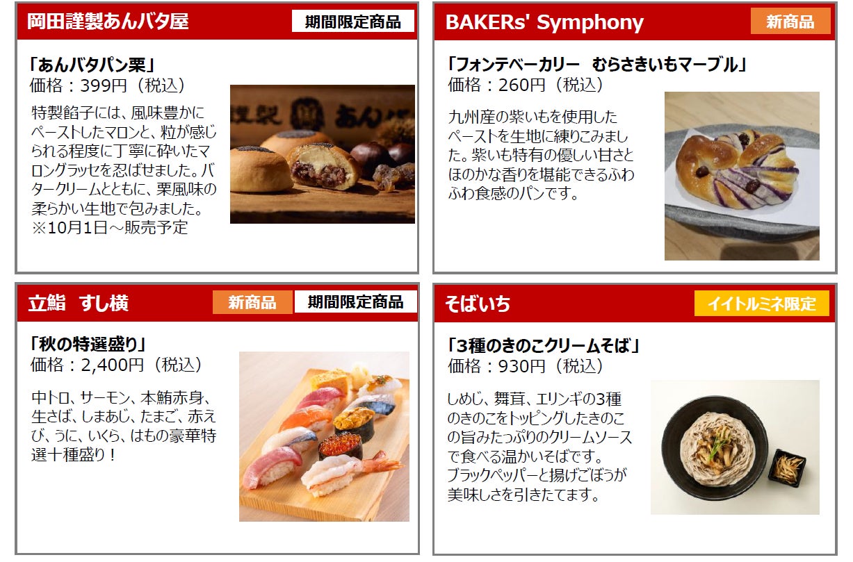 行楽シーズンもJR新宿駅「イイトルミネ」でお買い物“食欲の秋”にぴったりな季節感たっぷりのグルメや、小腹を満たすお手軽スイーツ&お酒に合うおつまみも