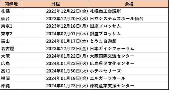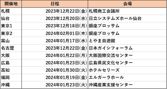 各会場にて、ご受講いただけますので、是非ご参加をご検討ください。
