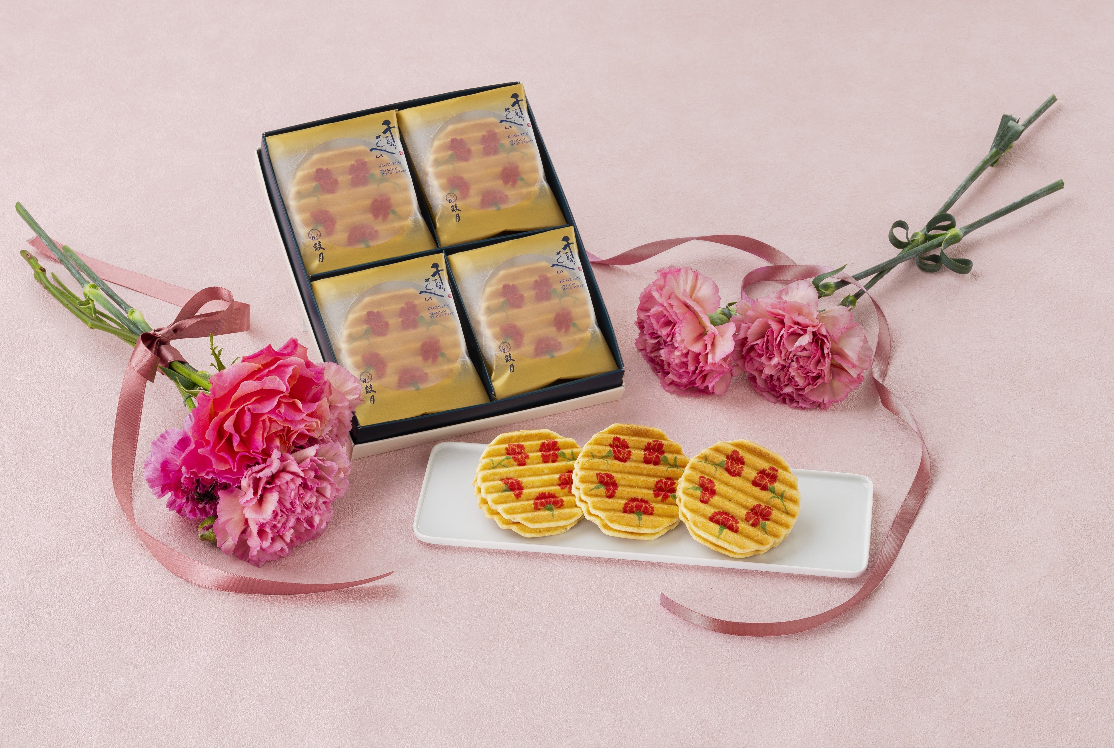 近年、日頃お世話になっているお母さんに「ありがとう」の気持ちを込めて、母の日ギフトの需要が高まる中で、鼓月でも「カーネーション」をモチーフにしたお菓子をはじめとして、この時期にしか味わうことのできない和菓子屋らしい季節限定の和菓子をご用意いたしました。