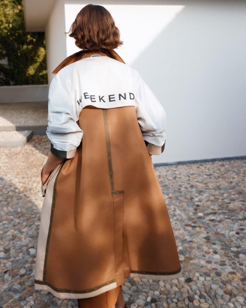 2023年春夏コレクションではウィークエンドマックスマーラのアイコンであるトレンチが、ベージュ、オリーブグリーン、キャメルによるカラーブロックで彩られました。このトレンチはクラシックなモノクロームバージョンと同様にリバーシブルで着用ができ、裏返せば「WEEKEND」のロゴが映え、さらなるスタイリングの可能性が広がります。
