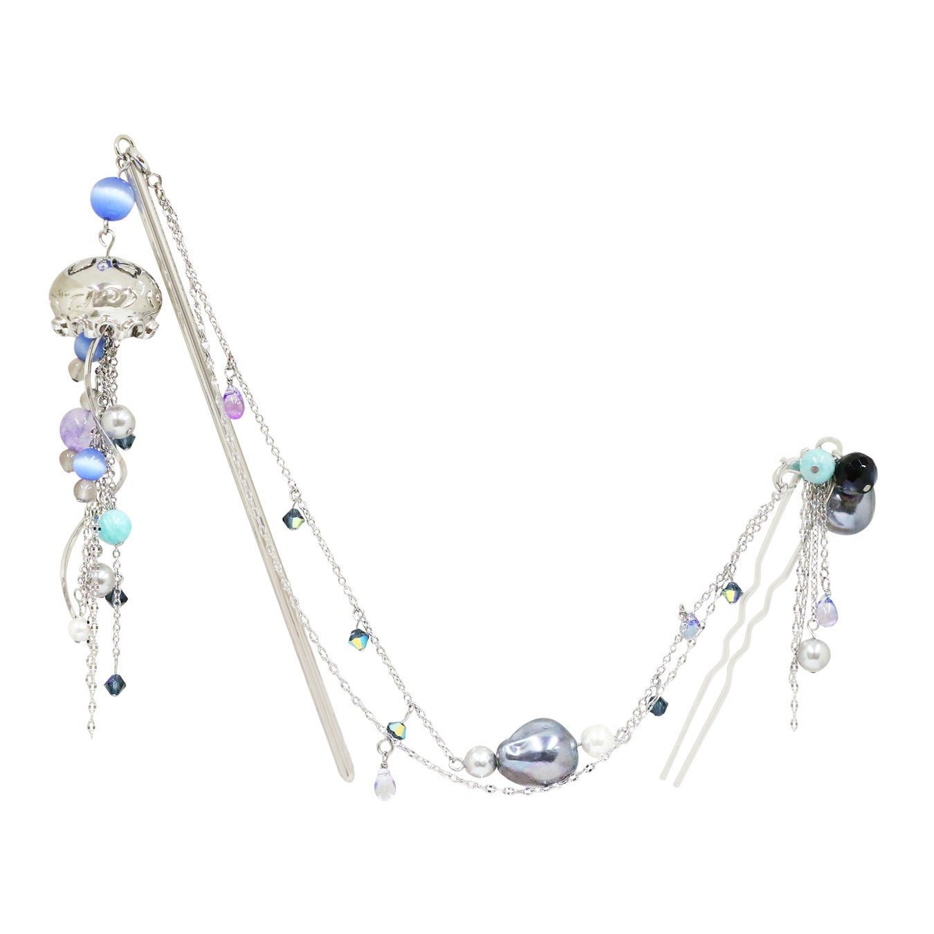 深海を漂う海月の簪、髪に添える海の煌めき。