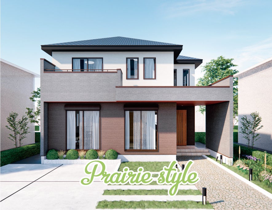 寄棟と規則性のある窓の配置で、プレーリースタイルを現代的にアレンジしたデザイン。