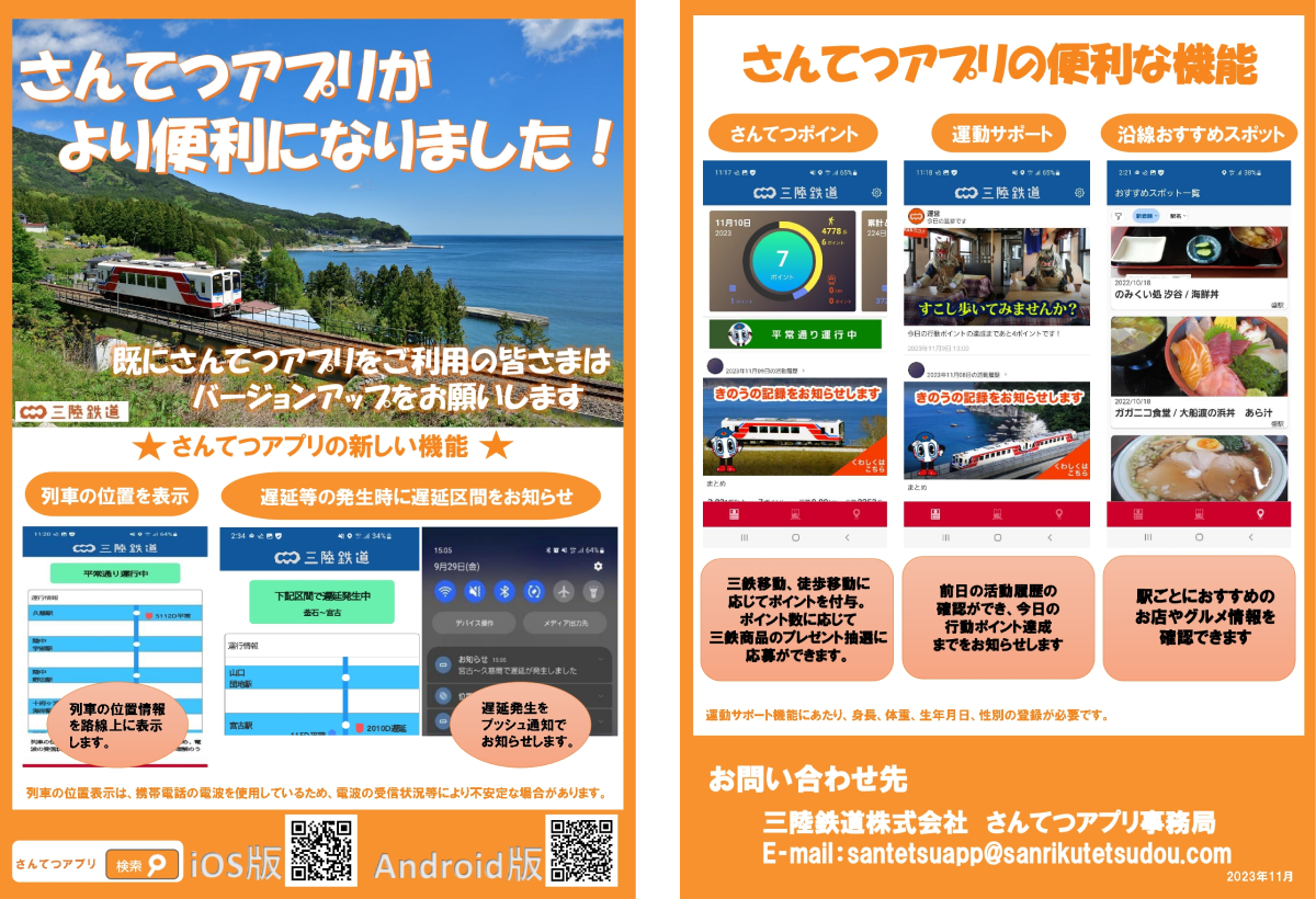 三陸鉄道「さんてつアプリ」を今後もよろしくお願いいたします。