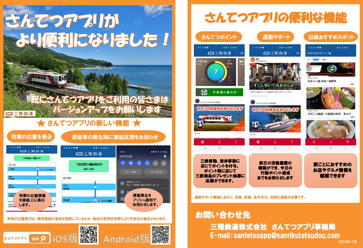 レイ・フロンティアは三陸鉄道へ提供する「さんてつアプリ」の改修が完了し、新しいバージョンにリニューアルされましたことをお知らせします。