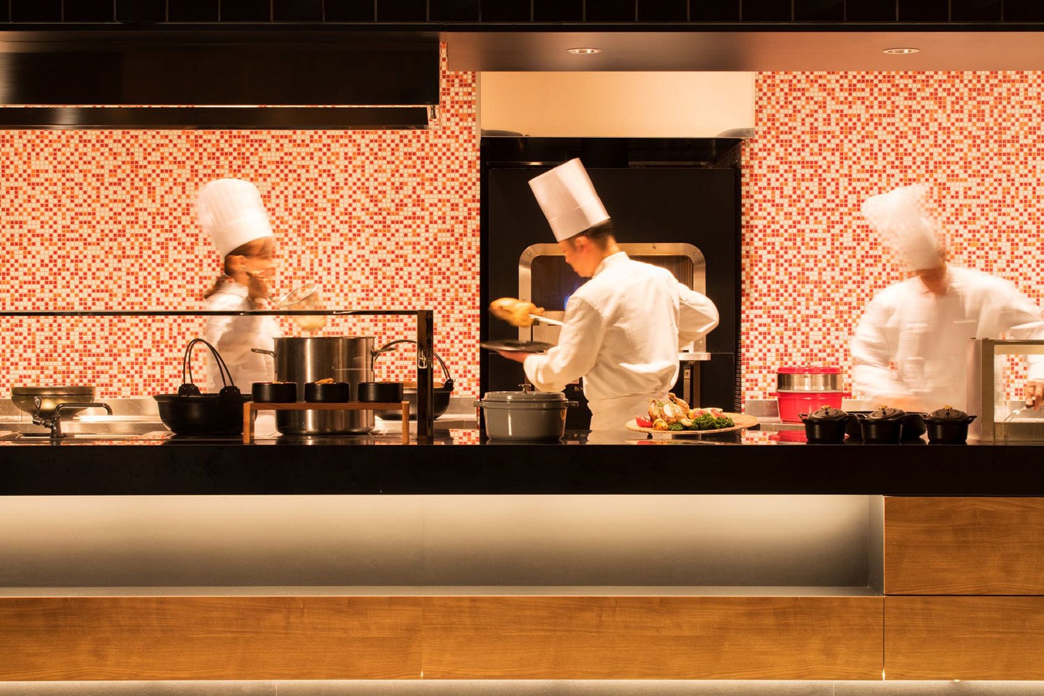 早朝から深夜まで利用できるオールデイダイニングです。季節の食材を使用し、バラエティ豊かな料理をブッフェやアラカルトで楽しめます。シズリングキッチンでは、シェフが目の前で調理し、"できたて"の料理を提供します。広々とした空間で、見て楽しい、食べておいしい料理が堪能できます。
