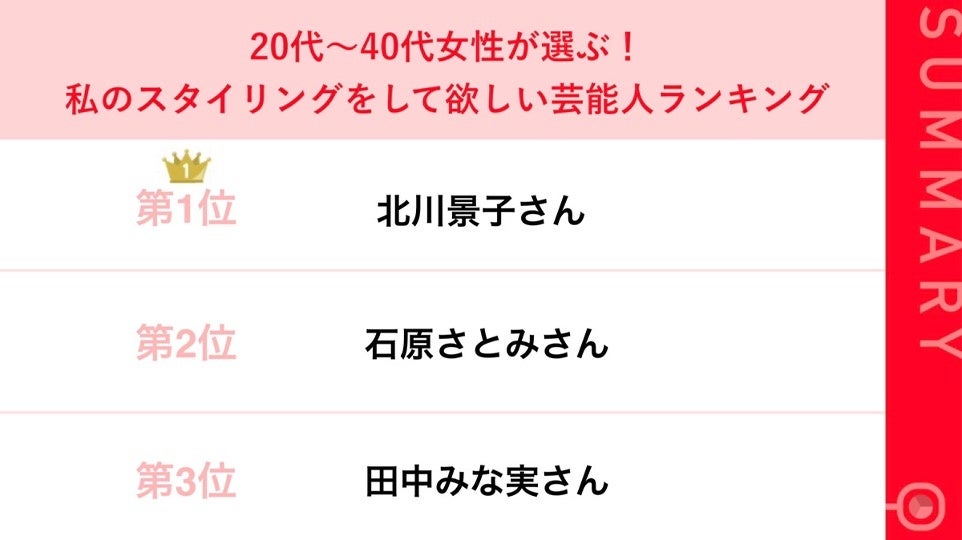 ■20代~40代女性が選ぶ、スタイリングして欲しい芸能人 総合ランキング