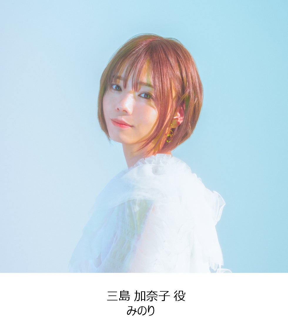 ヒロインたちとは別の劇団に所属しているものの、ある目的のためにヒロインの劇団に加入する三島加奈子を演じるのは、15年活動したアイドルユニット「まなみのりさ」で、今年4月1日中野サンプラザでラストライブを成功させた、みのり氏です。