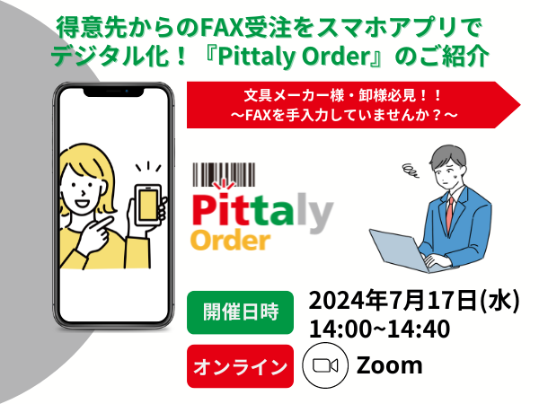 イベント名:文具メーカー様、卸様必見!!得意先からのFAX受注をスマホアプリでデジタル化!『Pittaly Order』のご紹介