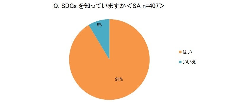 「SDGsを知っていますか<SA>」という問では、「はい」(372)が9割以上となりました。近年大企業を始め、社会的にも盛んに取り組まれていることで、親世代にもSDGsが浸透していることがわかります。