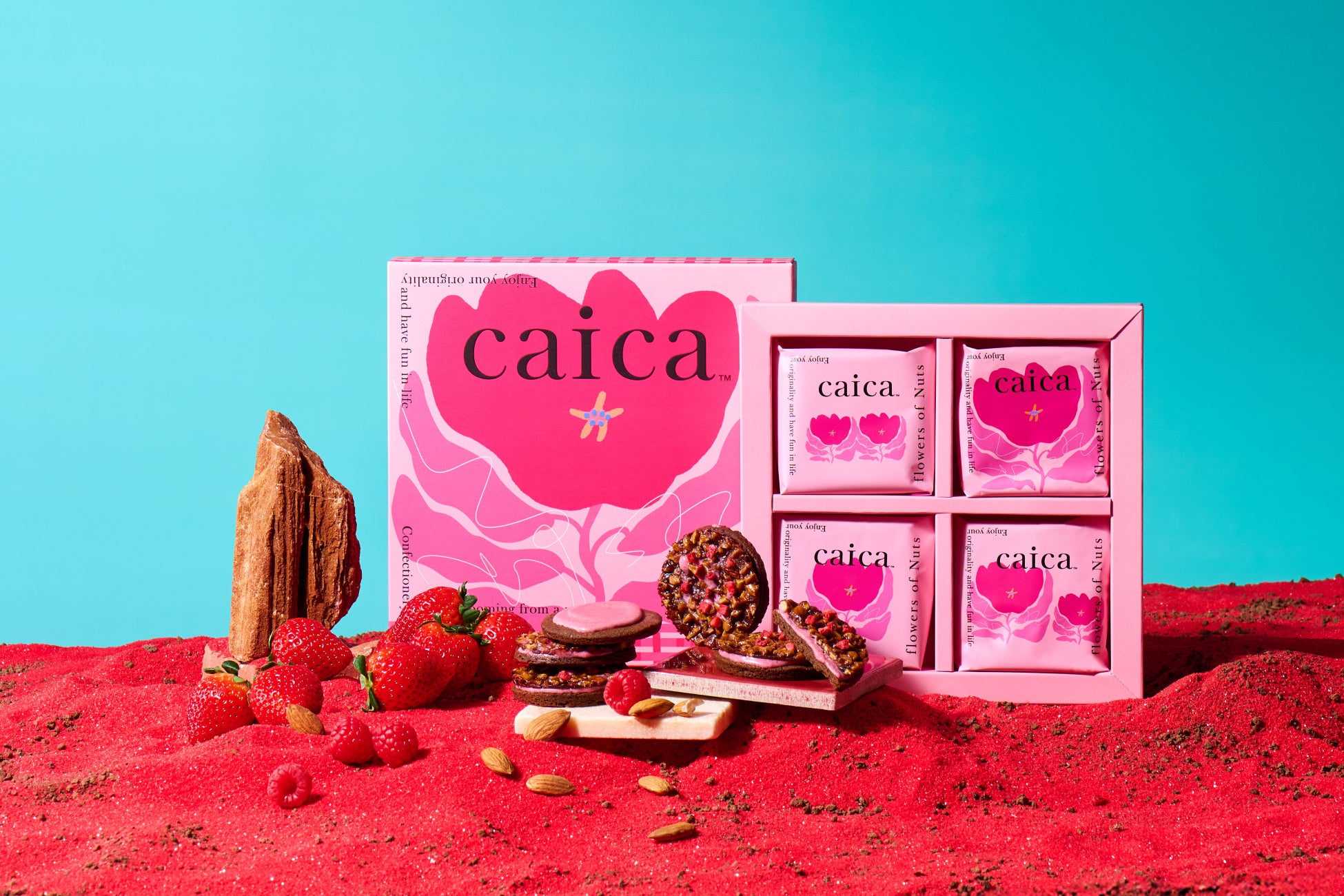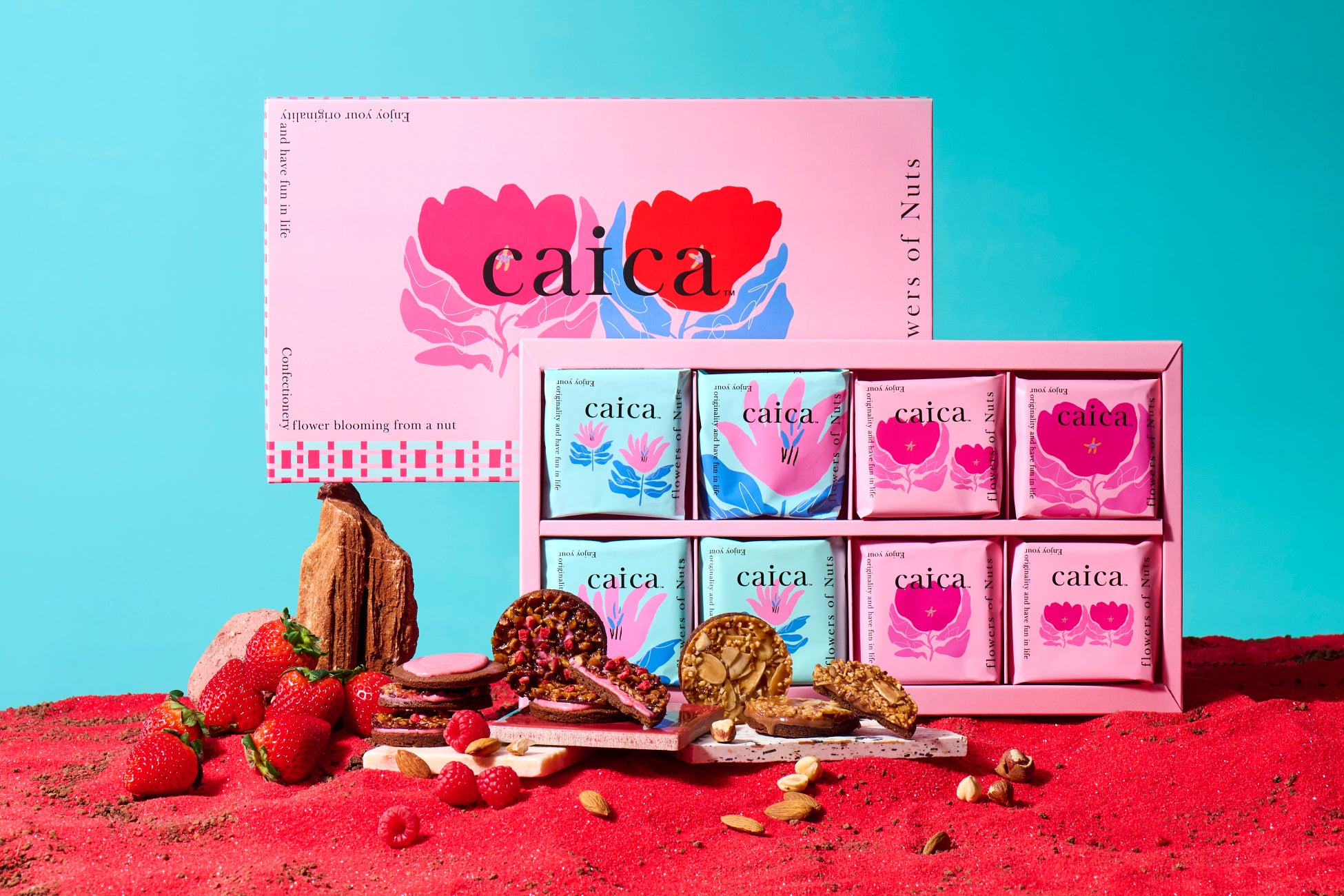 女性を中心に人気のナッツ菓子専門店「caica」から、初となるバレンタイン商品が登場。ピンクが基調となった商品やパッケージを通して、華やかなバレンタインシーズンを盛り上げます。ストロベリーとラズベリーの甘酸っぱさがアクセントとなったフロランタンは、特に甘いもの好きの方におすすめしたい逸品。チョコレートとベリーの絶妙なバランスとナッツの香ばしさが、心を満たします。また、写真映えする全面ピンクの華やかなパッケージは、大切な方への贈り物としてだけでなく、自分へのご褒美としても最適です。可愛らしいピンクに包まれながら、心弾むひとときをお楽しみください。