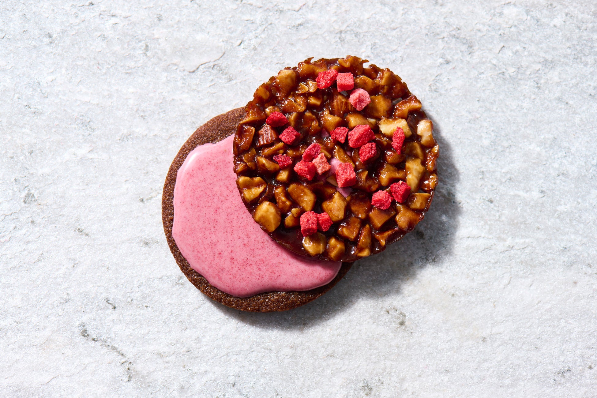 【先行販売】ナッツとベリーの甘酸っぱいバレンタインスイーツが登場!ピンクのパッケージで「caica」が贈る、3層の特別なフロランタン2種のベリーが主役の「フロランショコラサンド〈ダブルベリー〉」