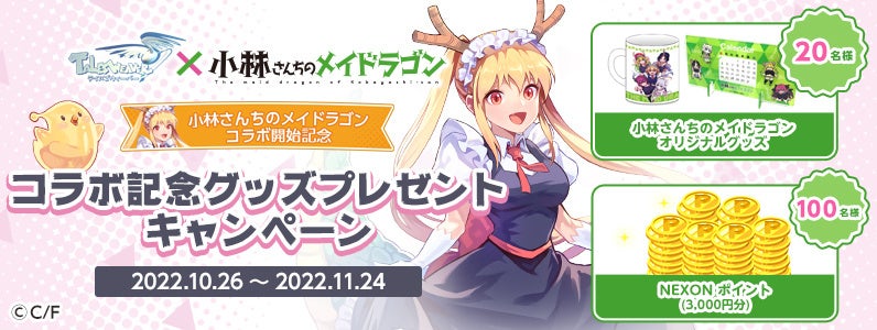 株式会社ネクソンは、PC向けオンラインRPG『テイルズウィーバー』において、2022年10月26日(水)より、人気漫画『小林さんちのメイドラゴン』とのコラボイベント・キャンペーンを開催いたします。