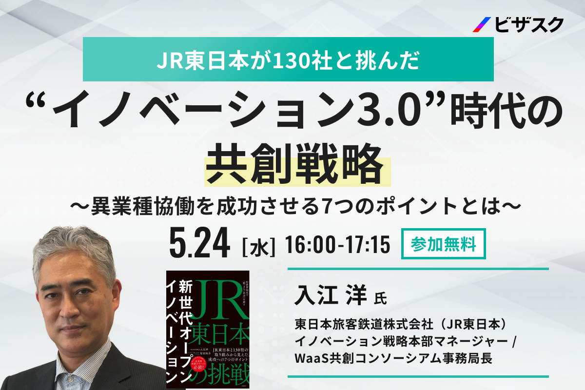 【5/24(水)16時】「JR東日本が130社と挑んだ”イノベーション3.0”時代の共創戦略〜異業種協働を成功させる7つのポイントとは〜」無料オンラインセミナーを開催