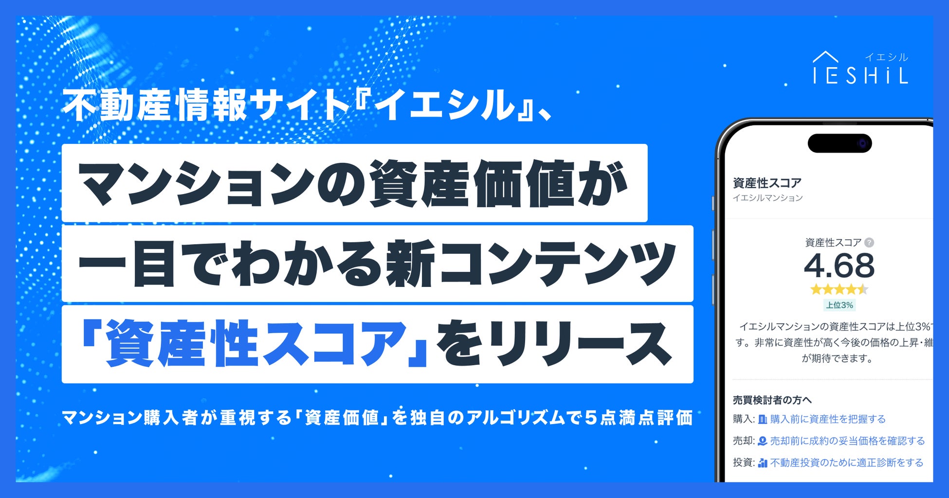 株式会社リブセンス(本社:東京都港区、代表取締役社長:村上太一、証券コード:6054)が運営する不動産情報サイト『イエシル』(https://www.ieshil.com/)は、マンションの資産価値を5点満点で評価する新コンテンツ「資産性スコア」を提供開始しました。