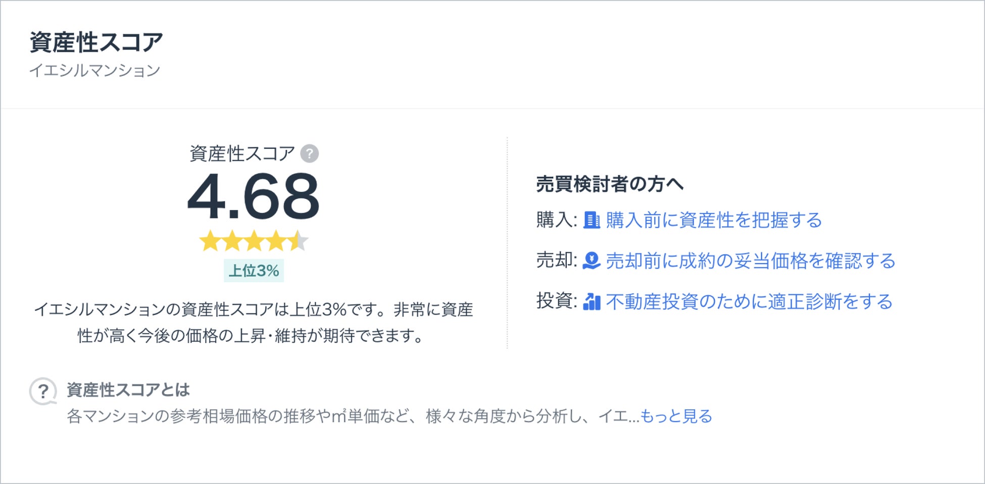 マンション購入者が重視する「資産価値」を独自のアルゴリズムで5点満点評価