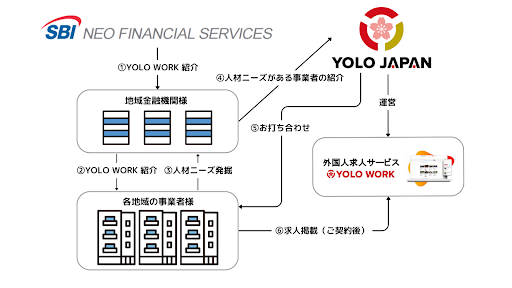 YOLO JAPANは、SBIネオファイナンシャルサービシーズ株式会社と地域金融機関と共に「YOLO WORK」を通じて全国の事業者を支援し、労働力不足の解消、地域の活性化、人材の多様化を促進します。