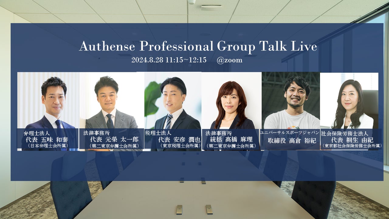 また、8月28日(水)には「Authense Professional Group Talk Live」と題したオンラインでのトークライブを実施いたします。Authense Professional Groupの各法人の代表陣が、Authenseが目指す未来について熱く語り合うことを予定しています。