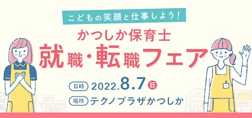 日本最大級の保育士専門就職・転職支援事業「保育士バンク!」、保育学生向けの就職支援事業「保育士バンク!新卒」を運営する株式会社ネクストビート(東京都渋谷区、代表取締役:三原誠司)は、葛飾区私立保育所等保育人材確保支援事業の一環として、「かつしか保育士 就職・転職フェア」を2022年8月7日(日)にテクノプラザかつしかにて開催いたします。