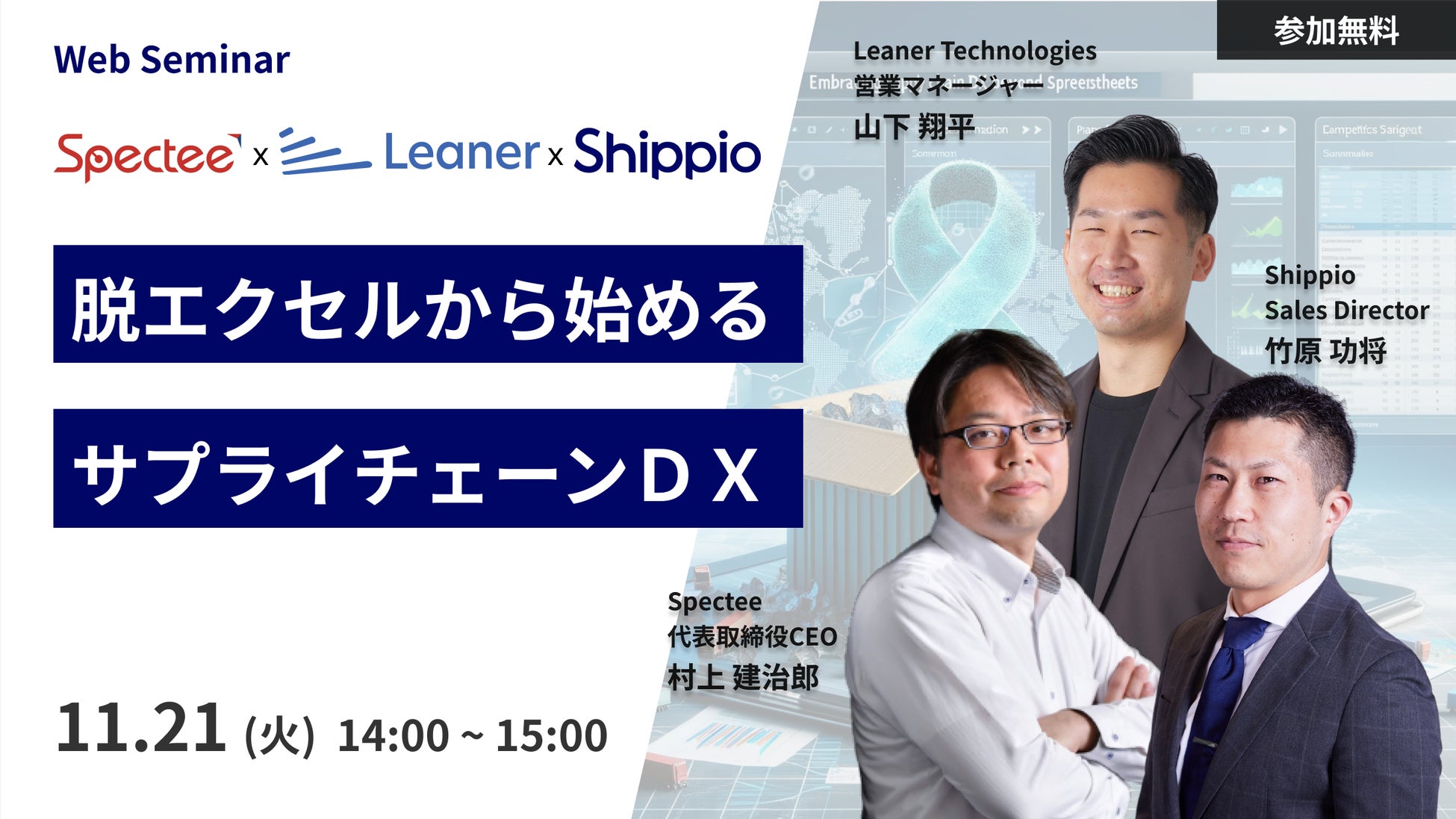 スペクティ×Leaner×Shippio、「脱エクセルから始めるサプライチェーンDXセミナー」を11月21日に共催
