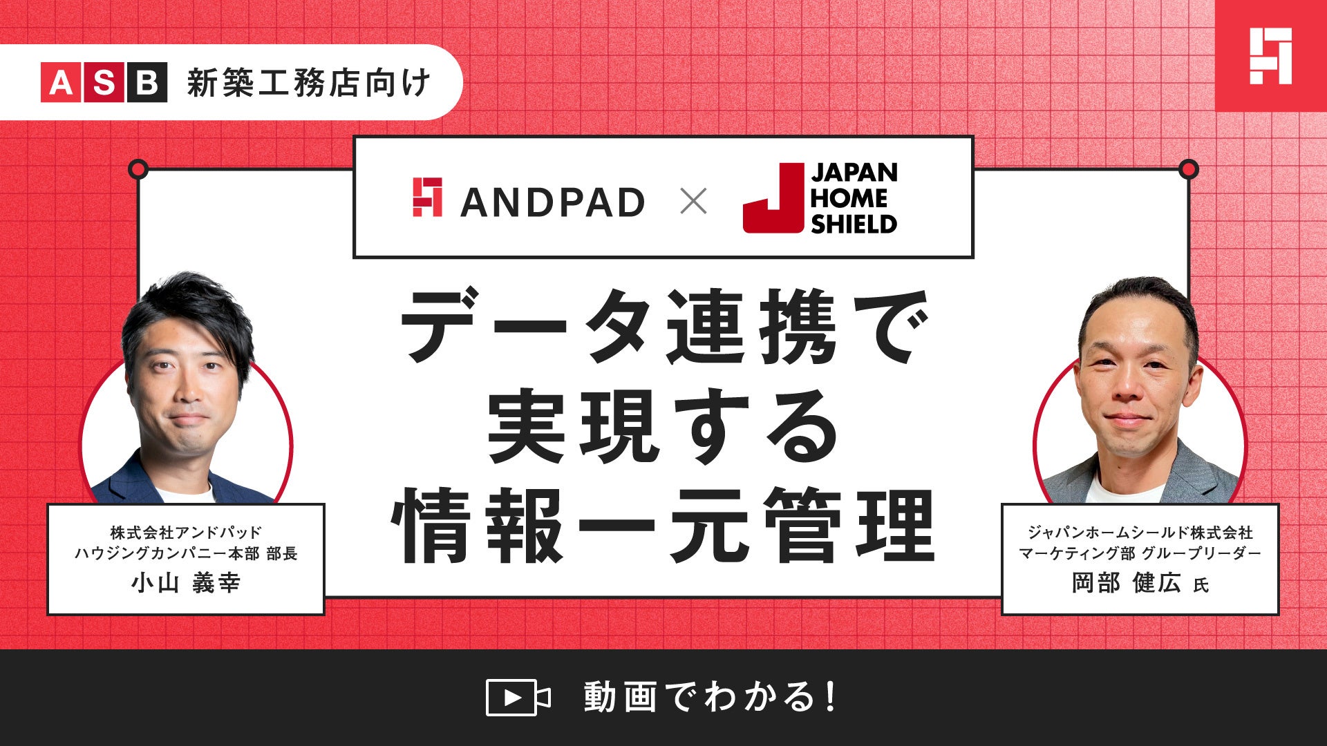 クラウド型建設プロジェクト管理サービス「ANDPAD」を運営する株式会社アンドパッド(本社:東京都港区、代表取締役:稲田武夫、以下アンドパッド)と地盤調査を提供するジャパンホームシールド株式会社(本社:東京都墨田区、代表取締役社長 勅使河原 隆巳、以下JHS)は、住宅業界の生産性向上を目的に、地盤調査に関わる業務効率化に向けたシステム連携を開始いたします。