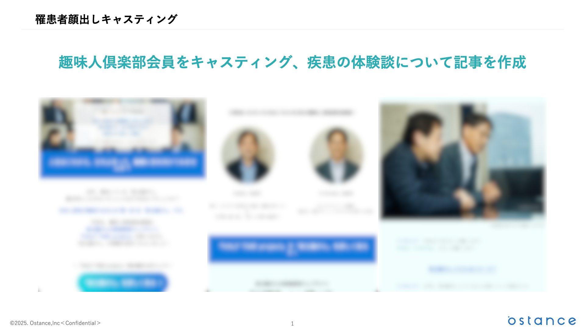 ・治療経験者・罹患者を趣味人倶楽部会員からキャスティング可能。体験者の生の声をヒアリング・コンテンツ化することによって、疾患をより自分ごと化しやすいクリエイティブへ。