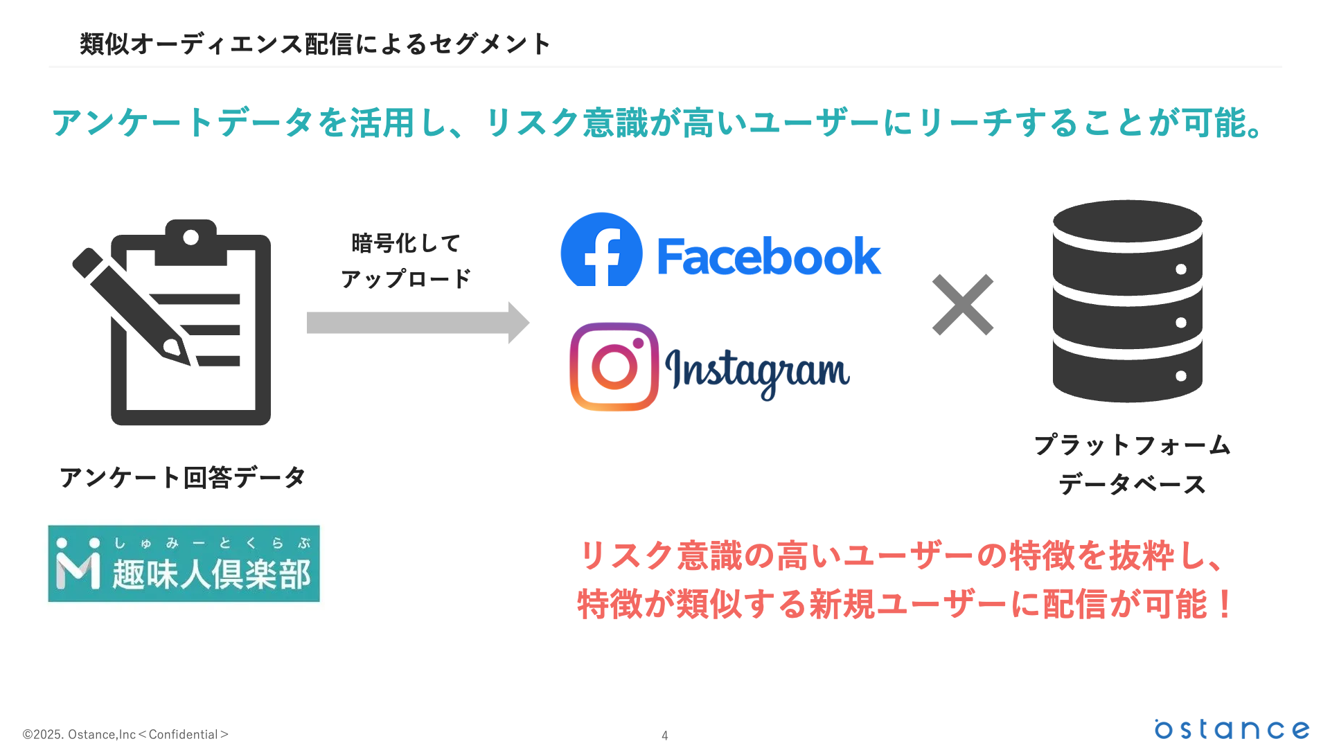 ・回答者の属性・行動データをもとに類似拡張し、「検討が進みやすい新規層」へ効率的に到達します。