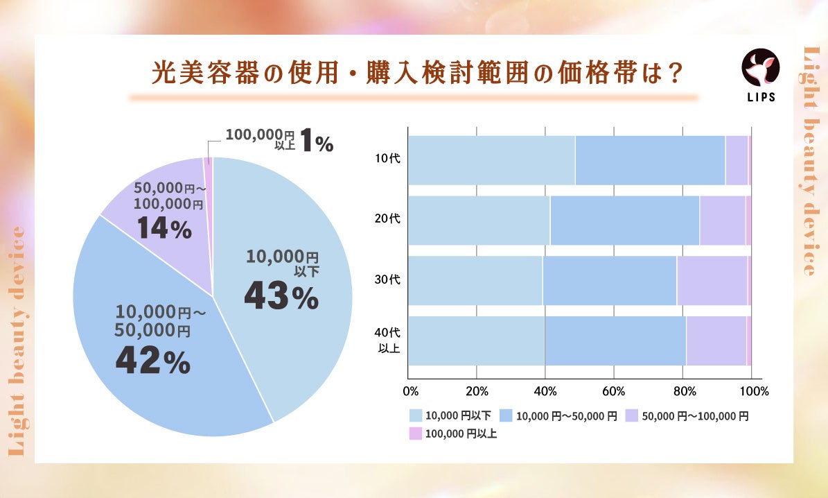 光美容器については、「実際に光美容器を所持している/いない」で、購入検討範囲の価格帯が大きく異なるのも印象的でした。