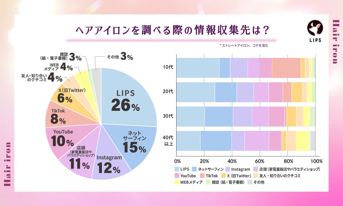 情報収集先については、ドライヤー・ヘアアイロンと同様に「LIPS」を使用した収集を主として行っている人が約3割。