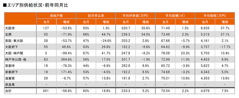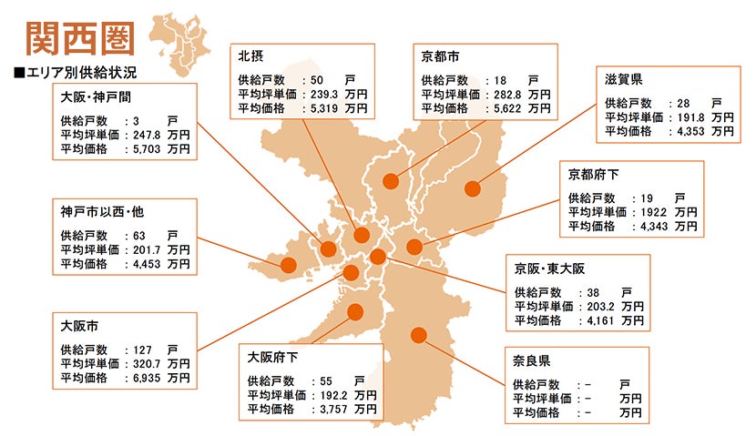 集計対象エリアは首都圏及び関西圏となっており、それぞれのエリア別相場情報、需給動向、