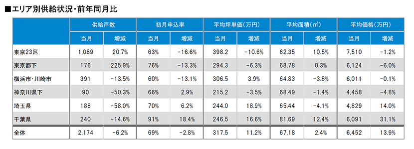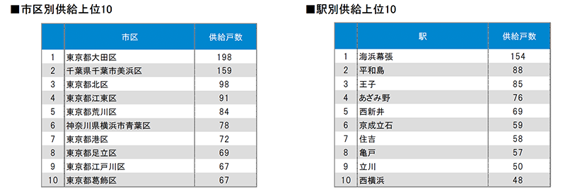 着工件数等を集計しました。また、前年同月における比較や市区別、駅別の供給ランキング等も算出しました。