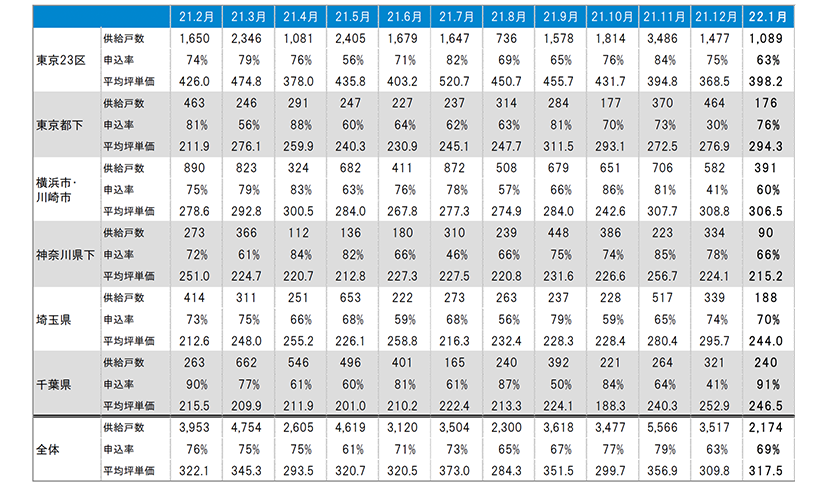 月例新築マンション動向発表~供給戸数が一都三県で6.2%減 関西圏で56.8%減(2022年1月度分譲実績)|2022年4月号~