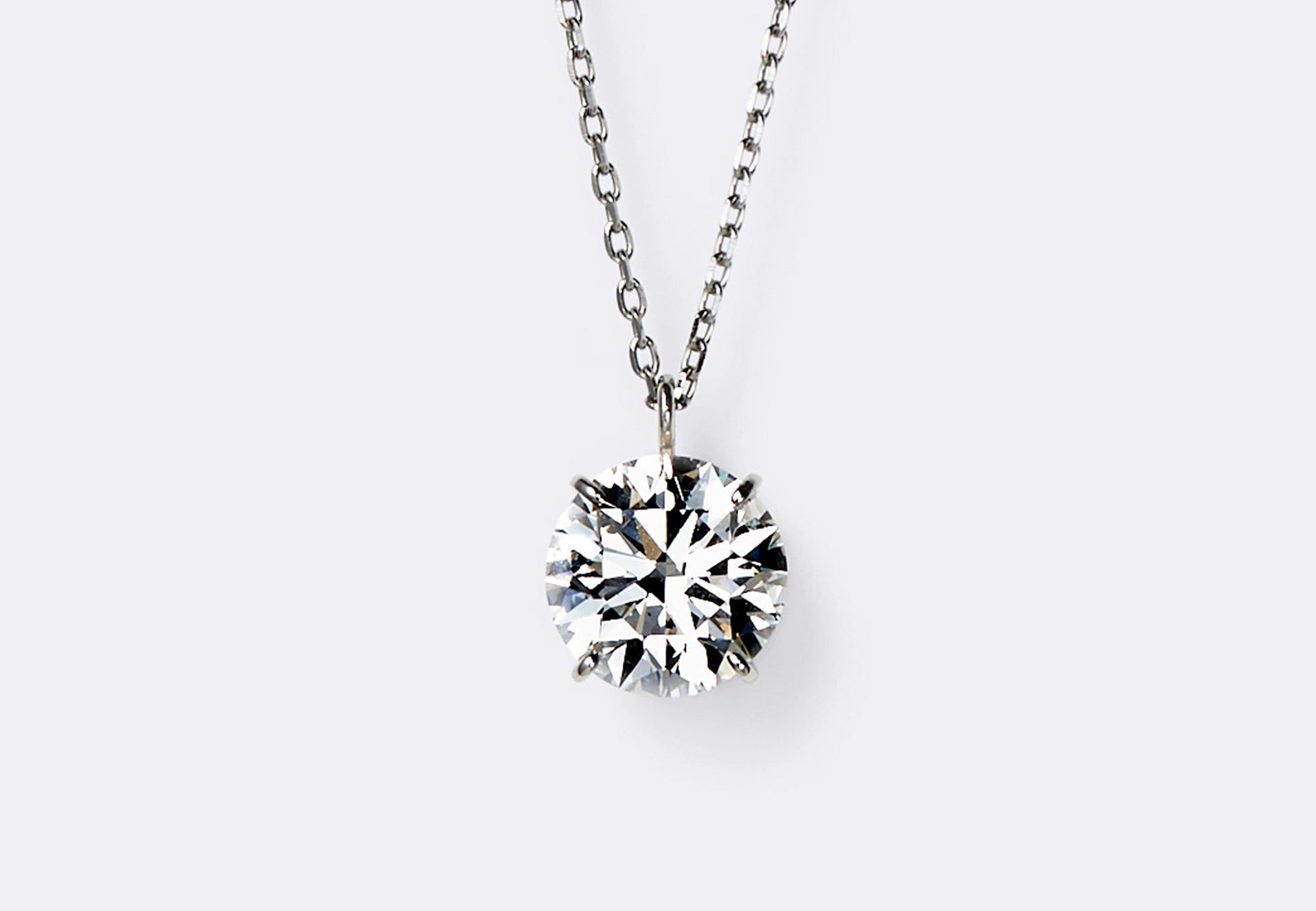 まるでダイヤモンドが浮いているかのような、特別な輝きが印象的なネックレスです。