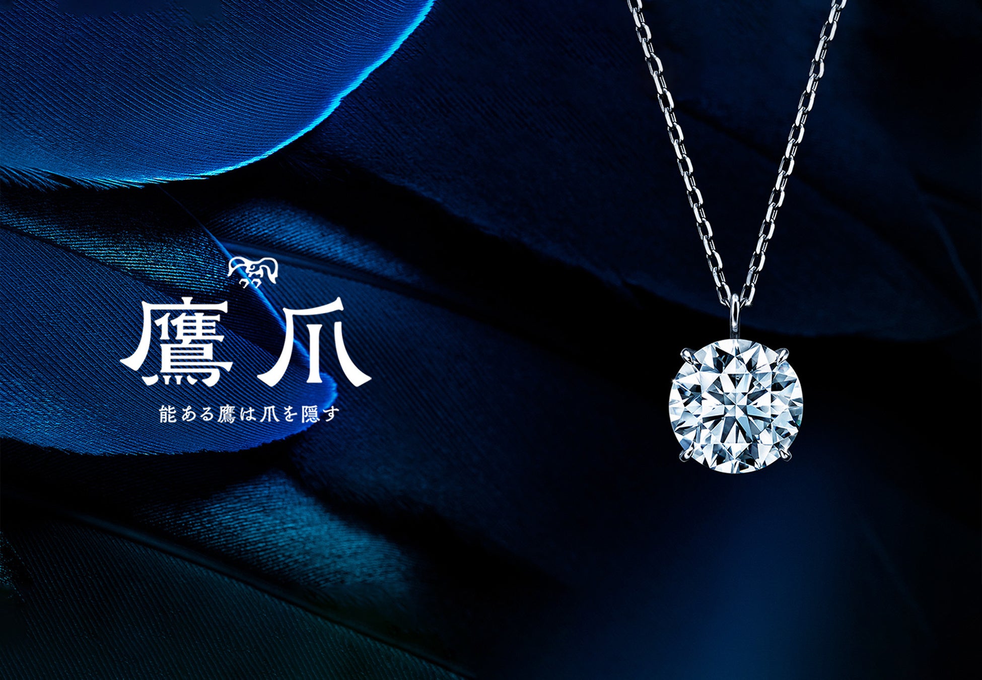 鷹爪は他のエンゲージネックレスと比べ、ダイヤモンドを留める爪が小さいため、よりダイヤモンドの輝きを引き立たせるデザインになっており、普段使いからフォーマルなシーンまで幅広く身につける事ができます。