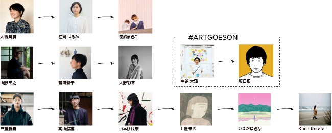 2020年11月に、「TAKAIYAMA inc.」を主催するグラフィックデザイナーの山野英之、京都を拠点に活動するグラフィックデザイナーの三重野龍、建築家 大西麻貴の3名でスタート。2023年1月には、「アートの多様性」を共通のキーワードとして、アートの重要性を発信していくプロジェクト#ARTGOESONを加え、全4軸にて展開しています。それぞれが次なるクリエイターを紹介し、現在までに14名による個性溢れるクリエイティブが生み出されました。