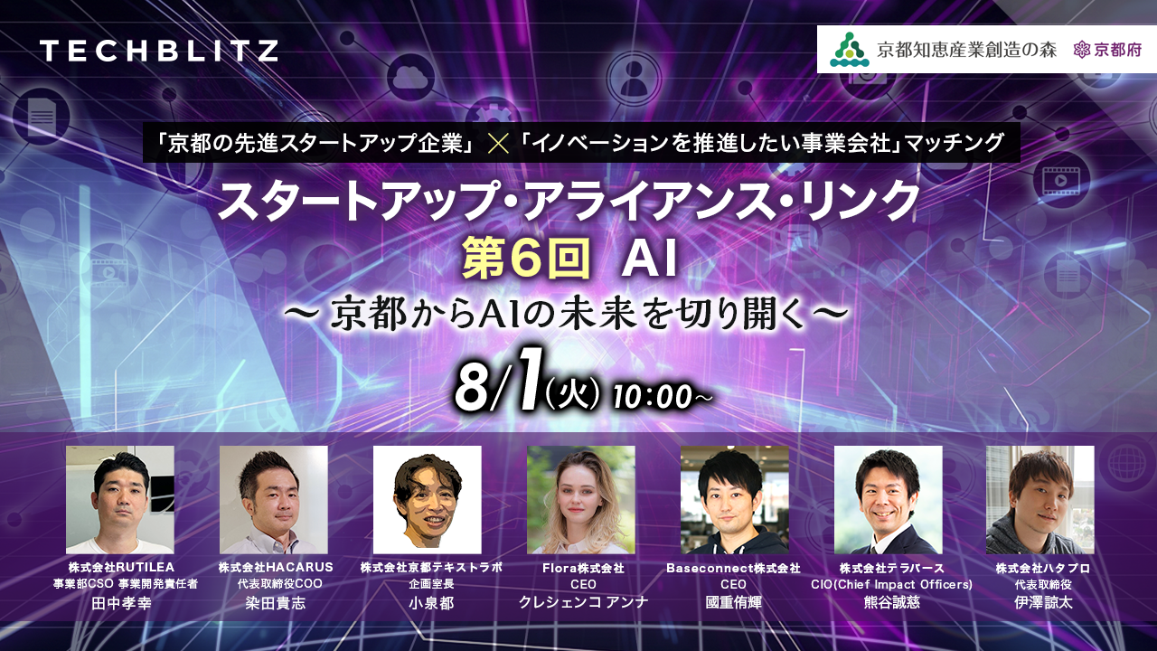 「スタートアップ・アライアンス・リンク」は、ディープテック企業が集まる京都のスタートアップ企業と、イノベーションを推進したい事業会社等とのマッチングを主目的としたオンライン・マッチングイベントです。