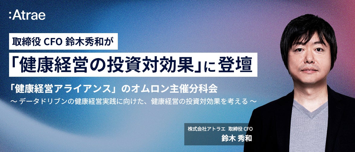 このたびアトラエからは、オムロン株式会社が主催する分科会「健康経営の投資対効果」に、取締役CFO 鈴木秀和がパネラーとして参加します。