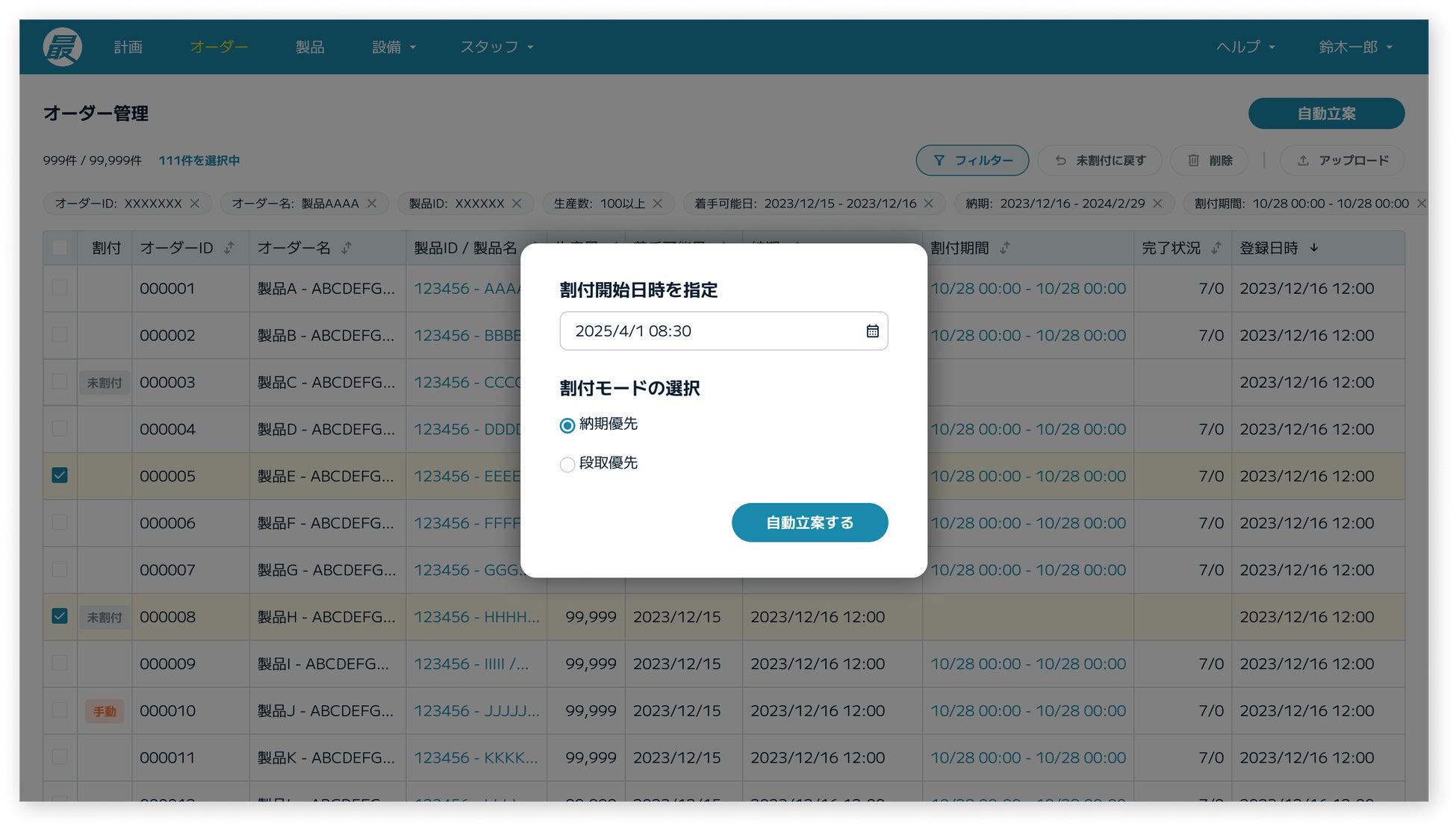 ※この機能は「納期優先」モードとの併用も可能であり“まず納期を守る”、次に“効率を高める”という段階的アプローチも選択できます。
