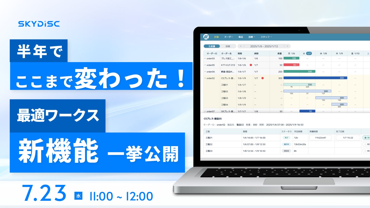 スカイディスクの生産計画DXサービス 最適ワークスが新機能「段取優先モード」をリリースしました