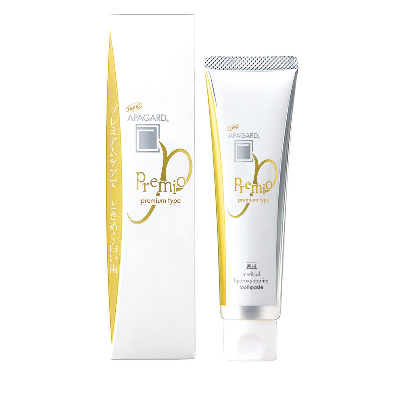 美白歯みがき「アパガードプレミオ」は、シリーズ1番人気のプレミアムタイプ。サンギ開発のむし歯予防成分「薬用ハイドロキシアパタイト」を高配合*2しています。控えめなミントでリッチな使い心地です。アパガードは、歯本来の健康的で自然な白さと美しさを引き出します。プレミアムケアでときめく白い歯へ。