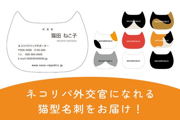 ネコリパブリックのスタッフが持っている猫型名刺に、あなたの名前と連絡先を記載して、ネコリパのパンフレットといっしょにお届けいたします。
